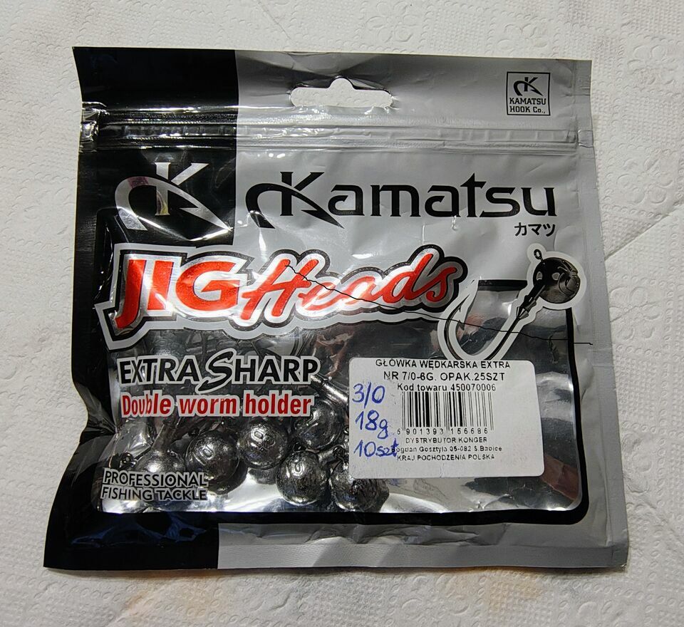 Sprzedam nowe główki jigowe Kamatsu JigHeads Extra Sharp o rozmiarze haka 3/0 i gramaturze 18g. W paczce znajduje się 9 sztuk główek jigowych. Nie łowię już na rzece więc idą na sprzedaż. Cena za sztukę 2,30 zł.Leszek